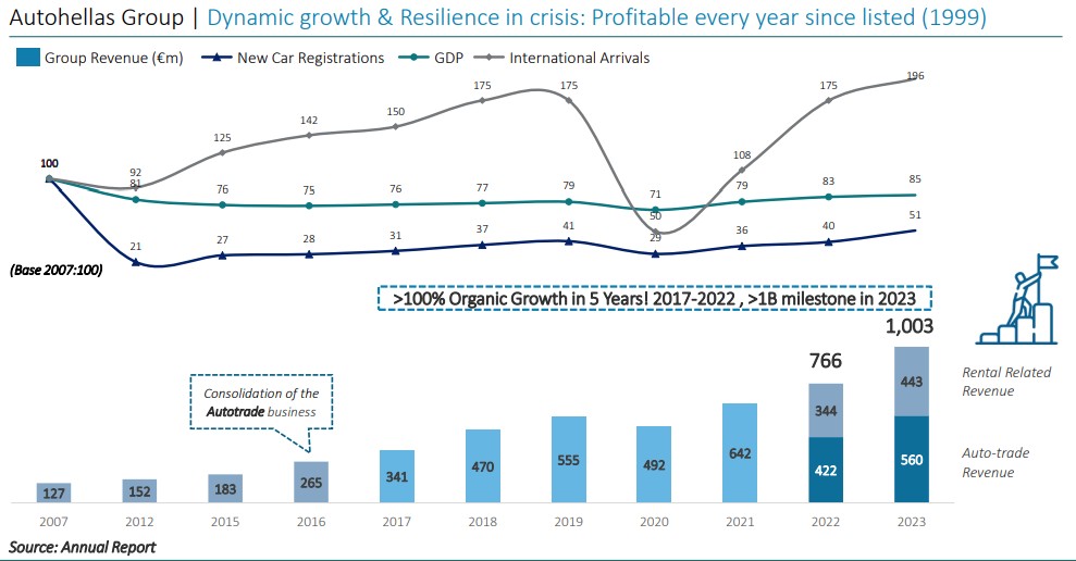 Το P/E ratio της Autohellas είναι ελκυστικό (κάτω από 7, τιμή κλεισίματος 5/2/2025 στα 10,66€).