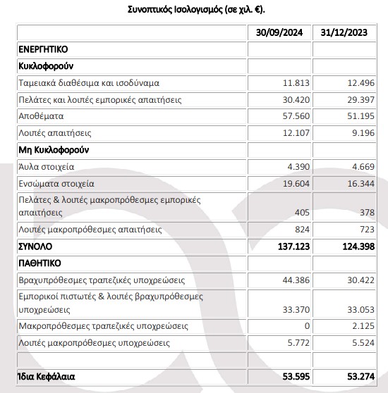 Οι βραχυπρόθεσμες τραπεζικές υποχρεώσεις αυξήθηκαν στα 44,4 εκατ. ευρώ (από 30,4 εκατ. στις 31/12/2023)